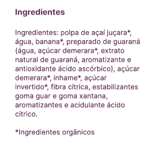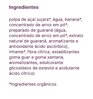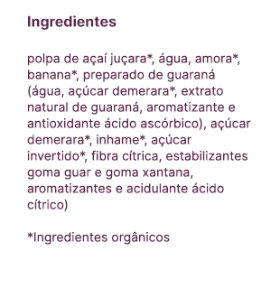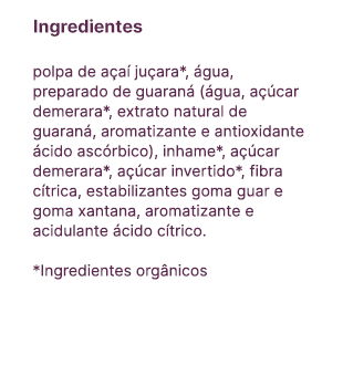 Juçaí é fonte natural de nutrientes, rico em ferro, potássio e antioxidantes. Usamos ingredientes naturais e orgânicos, o que garante ainda mais saudabilidade.